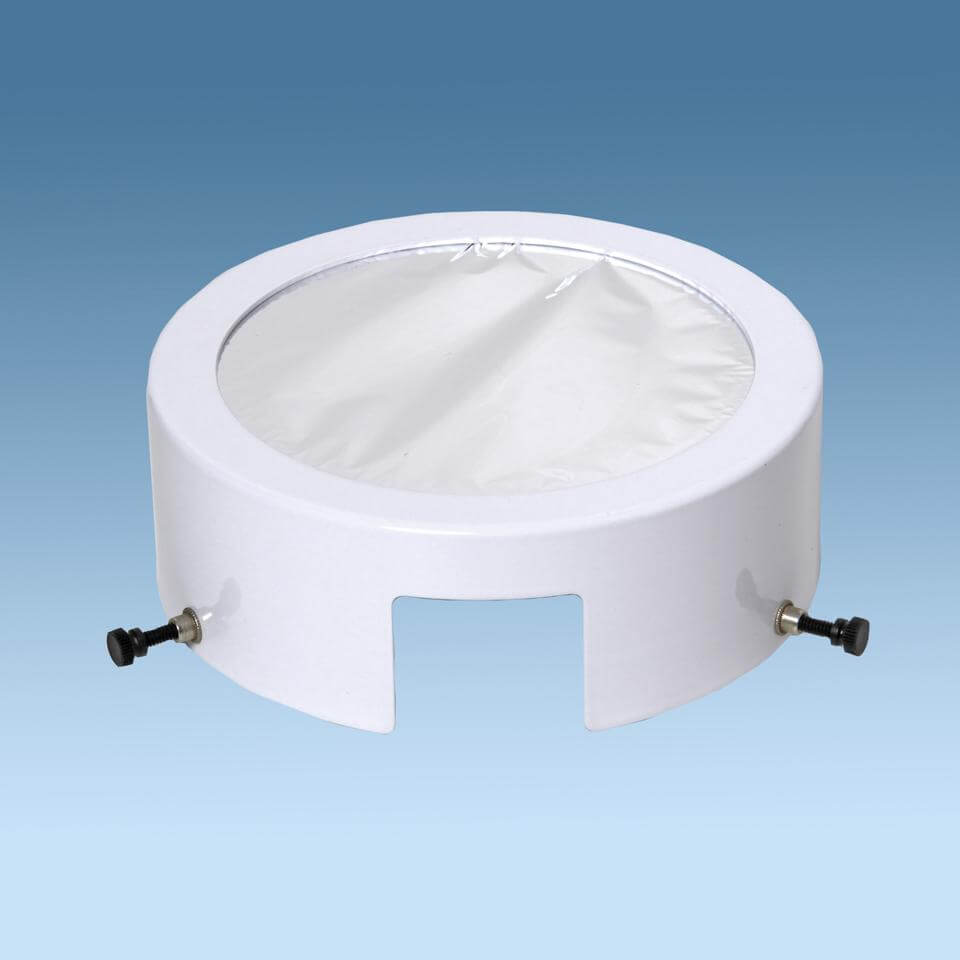 Baader AstroSolar™ film Filter cell constructed from lightweight 18Ga. aluminum and powder coated white. Heavy duty threaded inserts and nylon thumbscrews insure a secure fit.