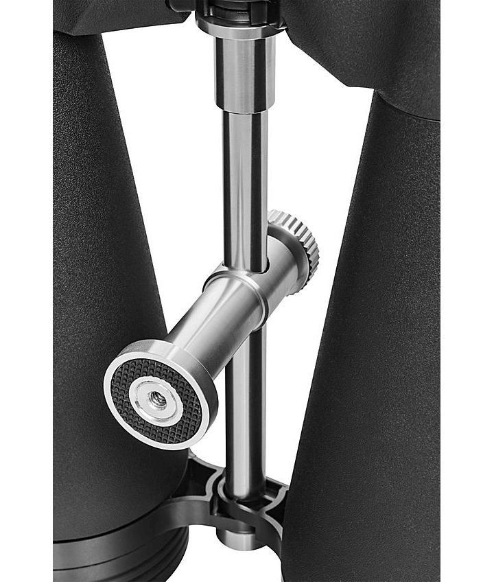The sturdy aluminum alloy binocular body with a second hinge between the objective lenses provides a solid, well collimated mechanical system. Glare-threaded and blackened interiors provide even more contrast with less light scatter. The built-in tripod mounting bar attaches securely to a standard photographic tripod, and each binocular comes with lens caps, neck strap and a soft carry bag.