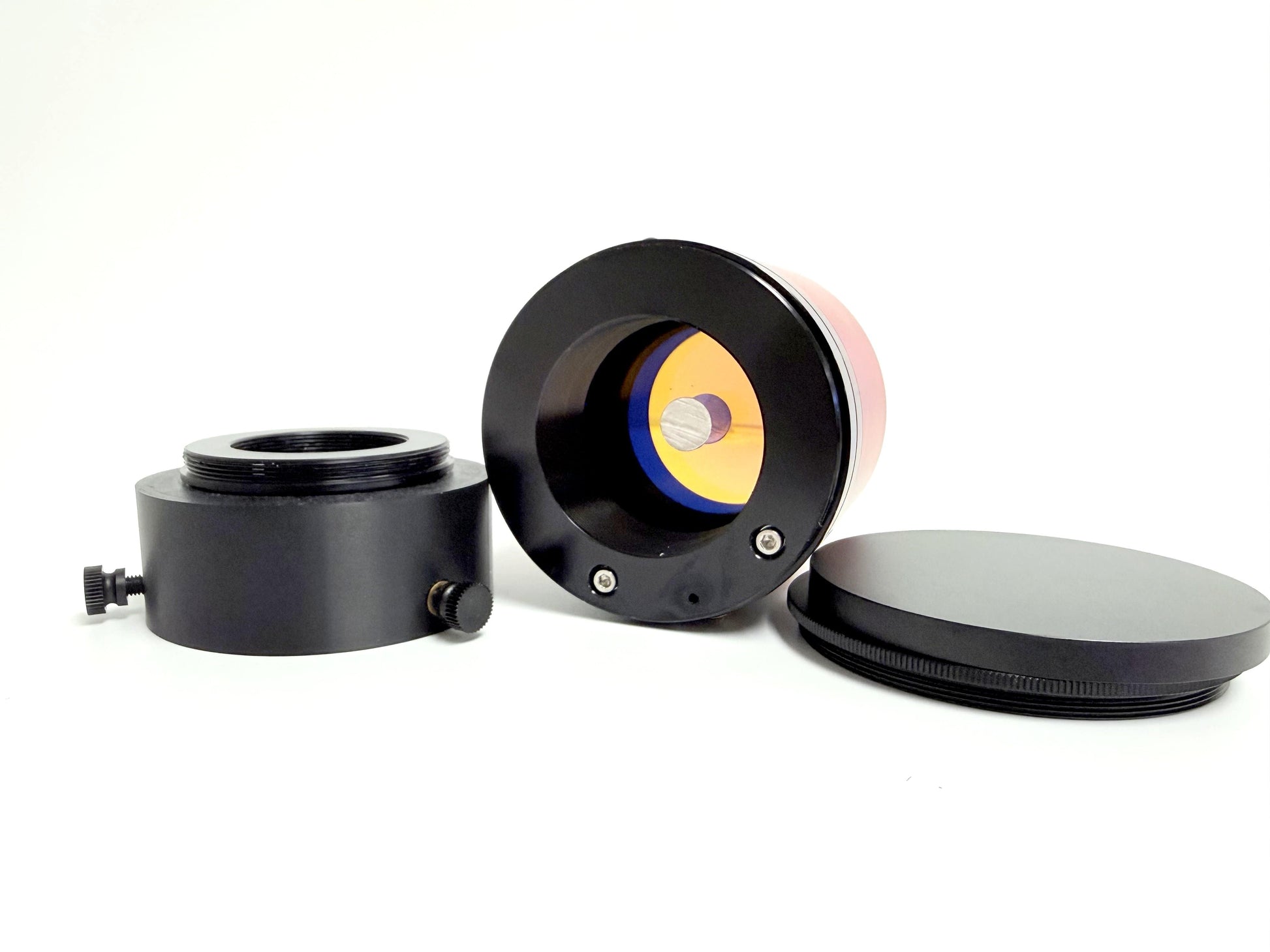 The LS50F includes a B1200 blocking filter (6mm clear aperture, for focal lengths up to 540mm) and a custom adapter plate. Provide your objective cell diameter at checkout and we'll machine the adapter to fit—at no additional cost for objective housings up to 4 inches.